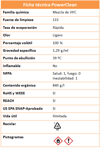 Diseñado para ahorrar tiempo y dinero, el limpiador de flux PowerClean seca rápidamente, no es inflamable y no deja residuos blancos. También es un líquido limpiador eficaz para limpiar conectores y eliminar óxidos ligeros al mismo tiempo que previene los residuos blancos.